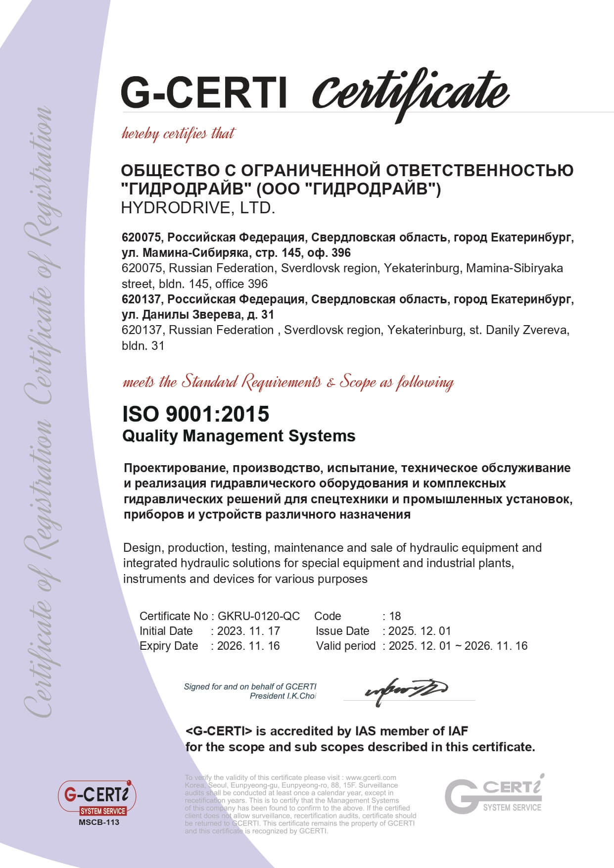 16 ноября 2025 г. JSE Group успешно продлила международный сертификат G-CERTI ISO 9001:2015